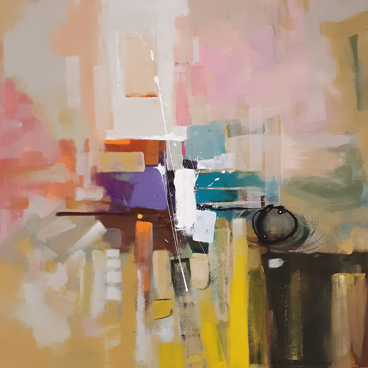In this piece, a more muffled color scheme was used. Muted teals and coral pinks replace the pure cadmium reds and oranges. But… who cares about my feelings on salmon, ochre, and ecru, right? I think I need to change my direction in these blogs. Let’s get a bit more playful.