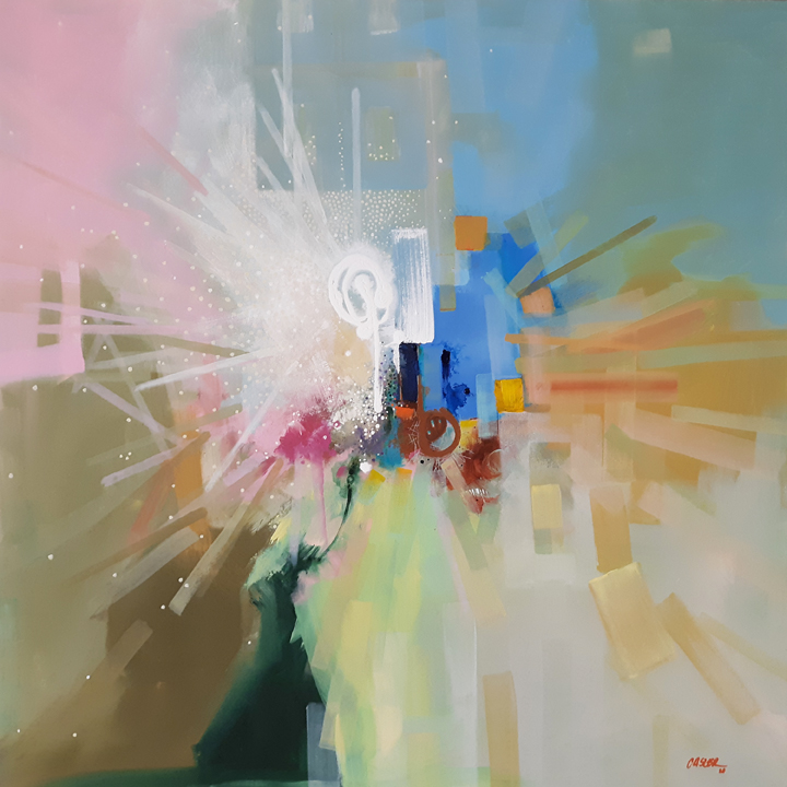 Radioactive Springtime. So why the French title? Because it wasn’t pretentious, like Latin. Beaucoup mieux, n’est-ce pas? So since we’re being definitely NOT pretentious, here’s a little “MOD!” color poetry to explain this painting.